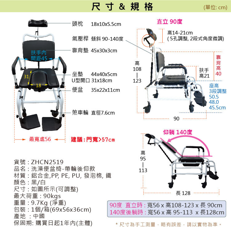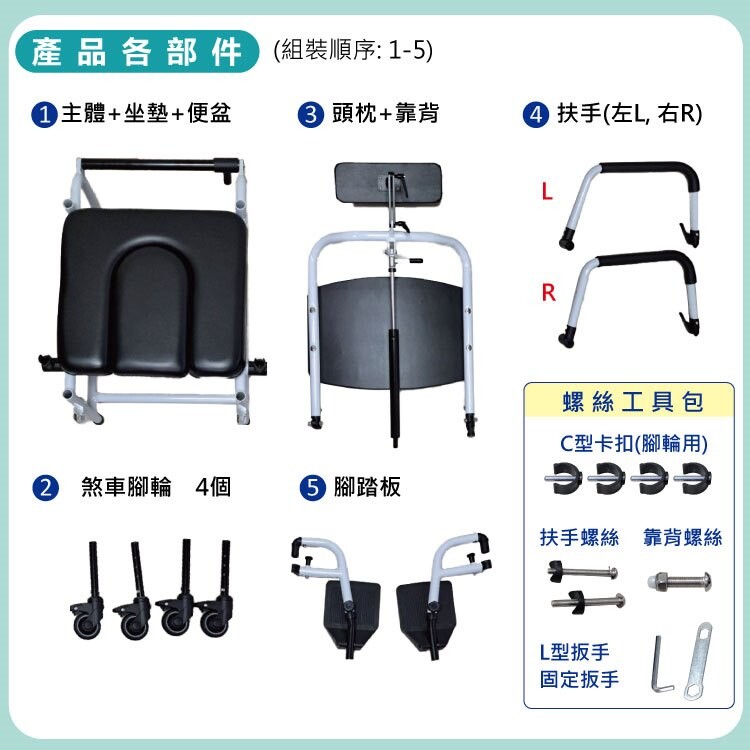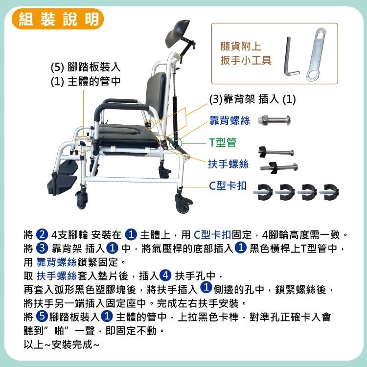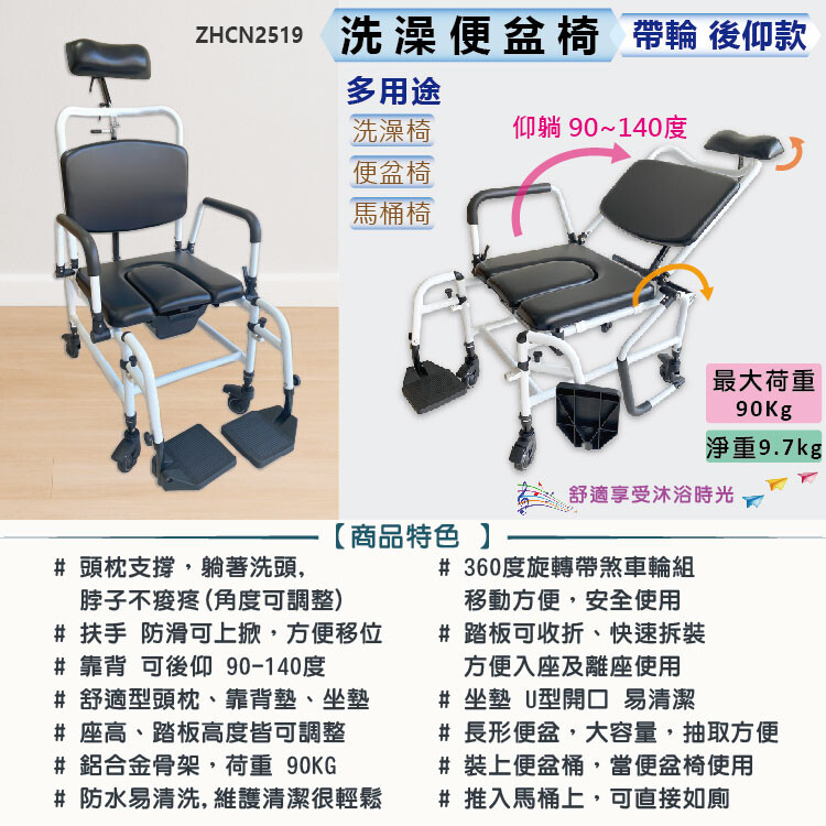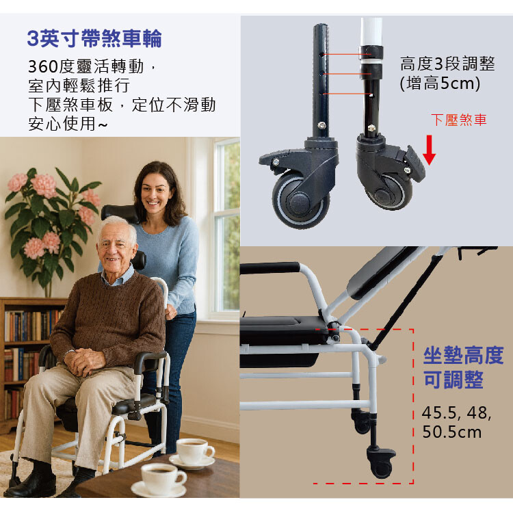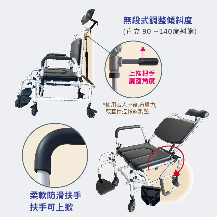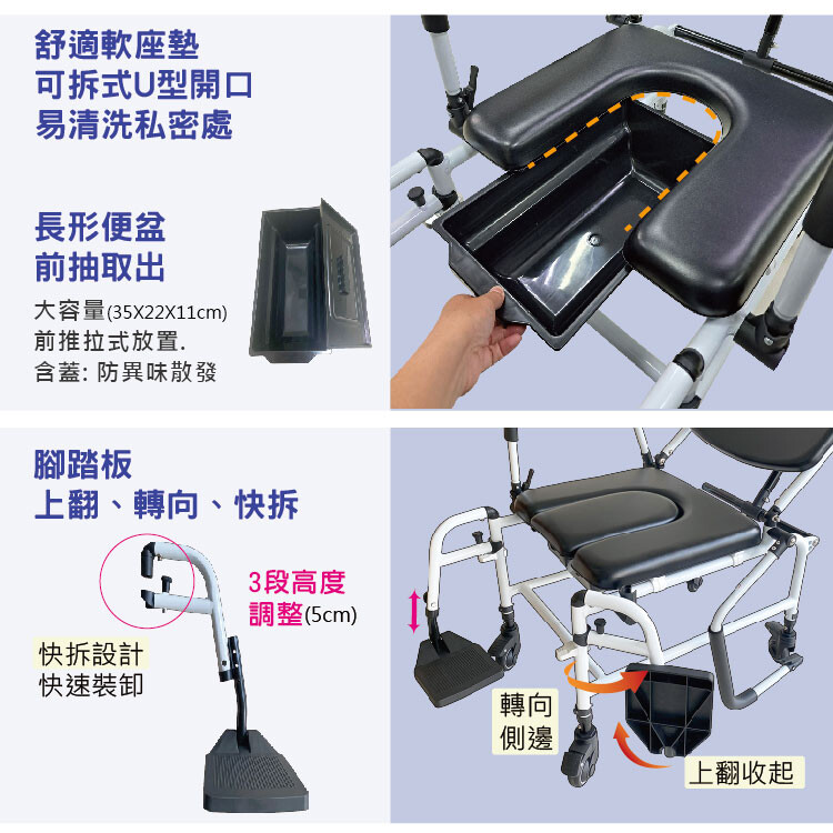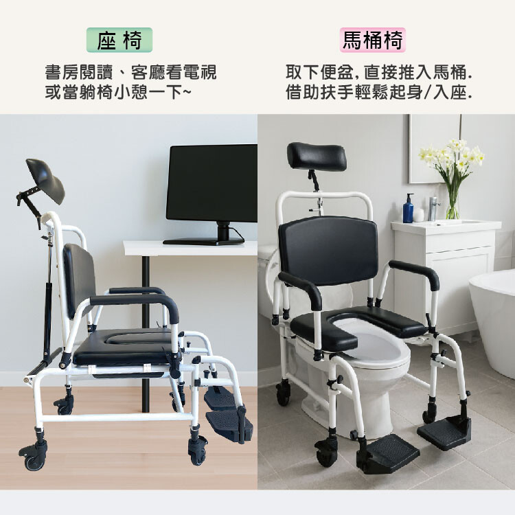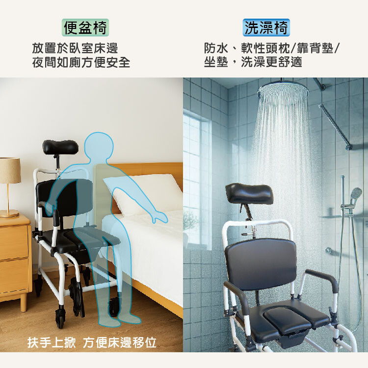 多用途: 移動式洗澡椅、便盆椅、馬桶椅
