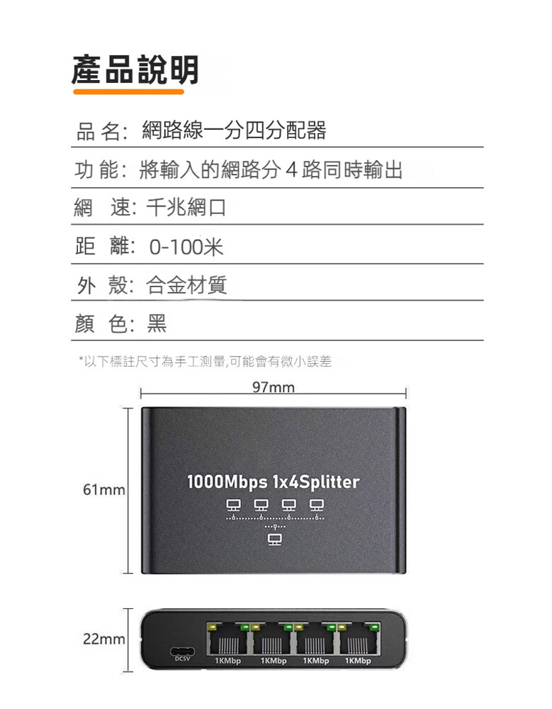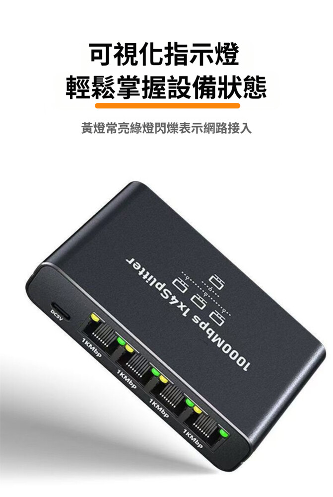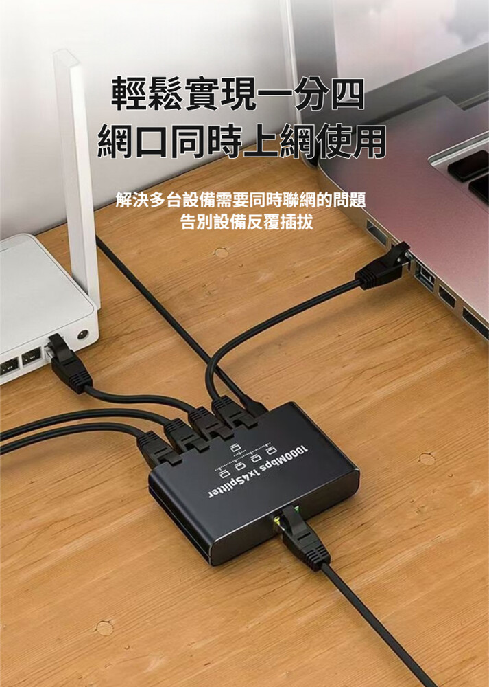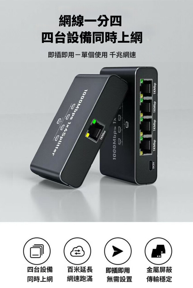 1KMbps網路線RJ45分配器1分4延長轉接器