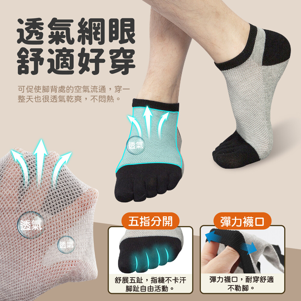► 五趾分開,減少細菌孳生,腳趾間乾爽,降低異味產生。