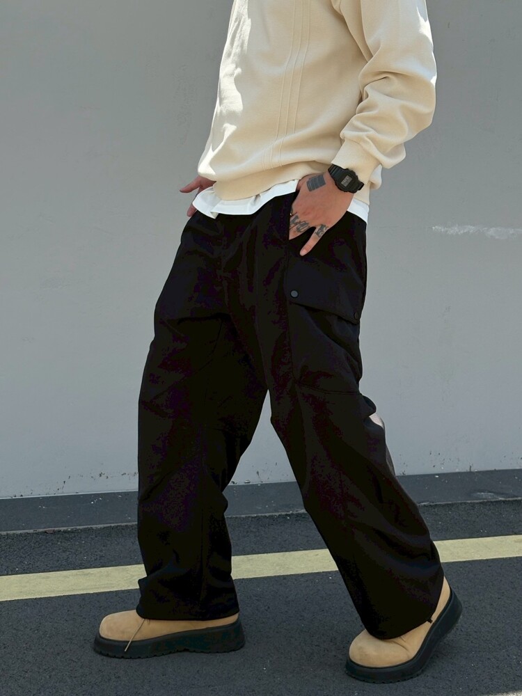 刷舊牛仔質感,展現時尚品味。寬褲版型設計,寬鬆舒適穿著感。