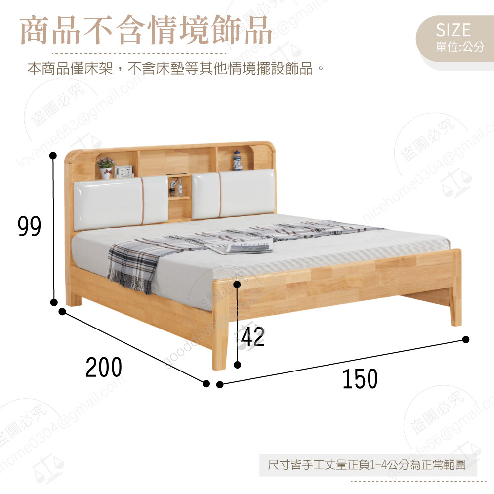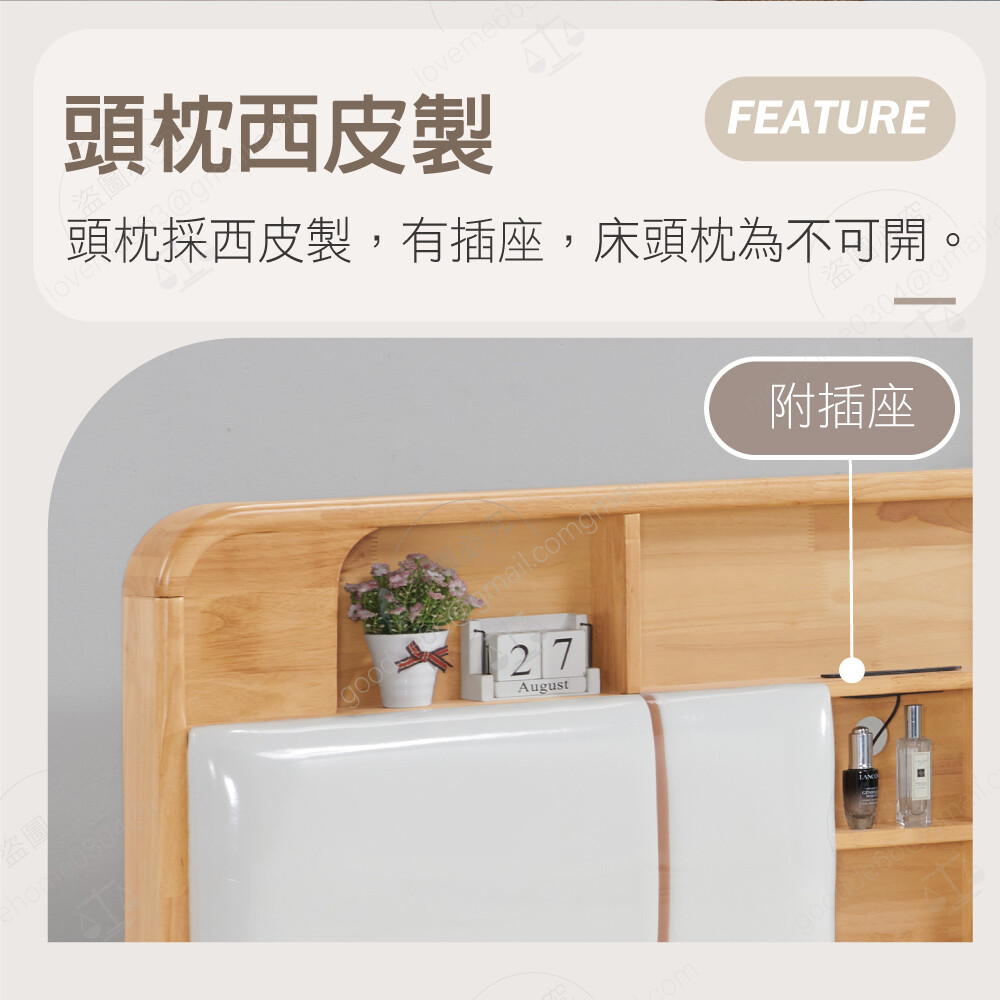 橡膠木實木,有插座,頭枕西皮製,床頭不可開