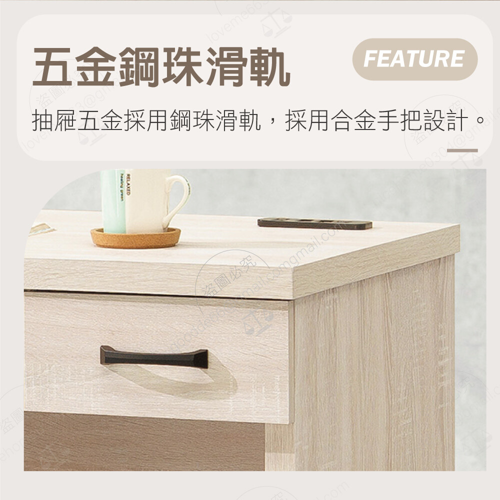 抽屜五金採用鋼珠滑軌 美背處理 合金手把