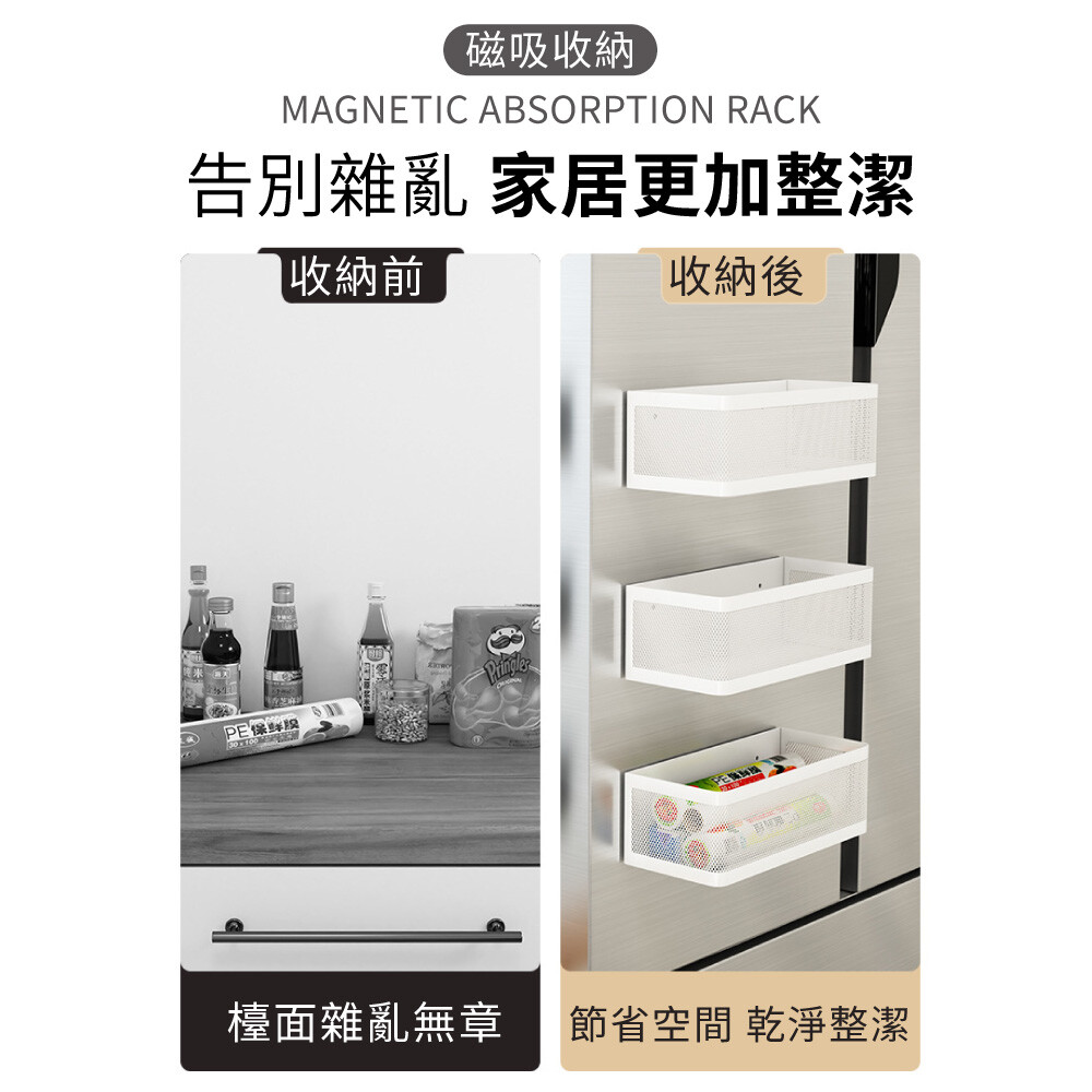 磁吸置物架#廚房磁吸收納#冰箱側收納籃#縫隙磁鐵置物籃#洗衣機磁吸式收納架#廚房收納##側掛架