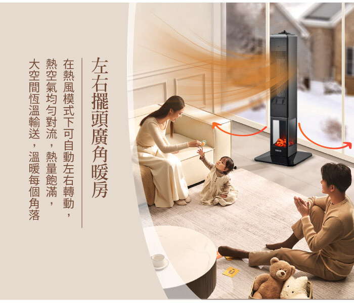 可左右旋轉,廣角送暖