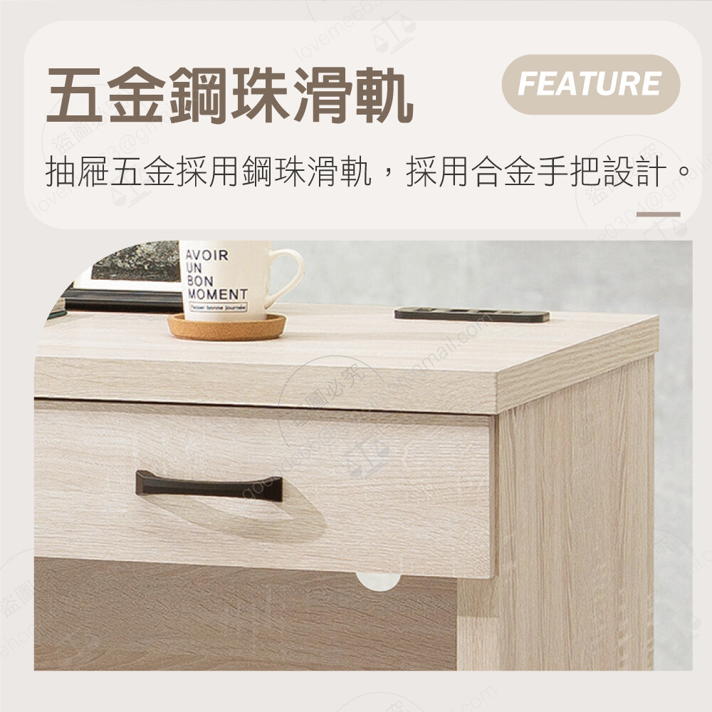 抽屜五金採用鋼珠滑軌 美背處理 合金手把