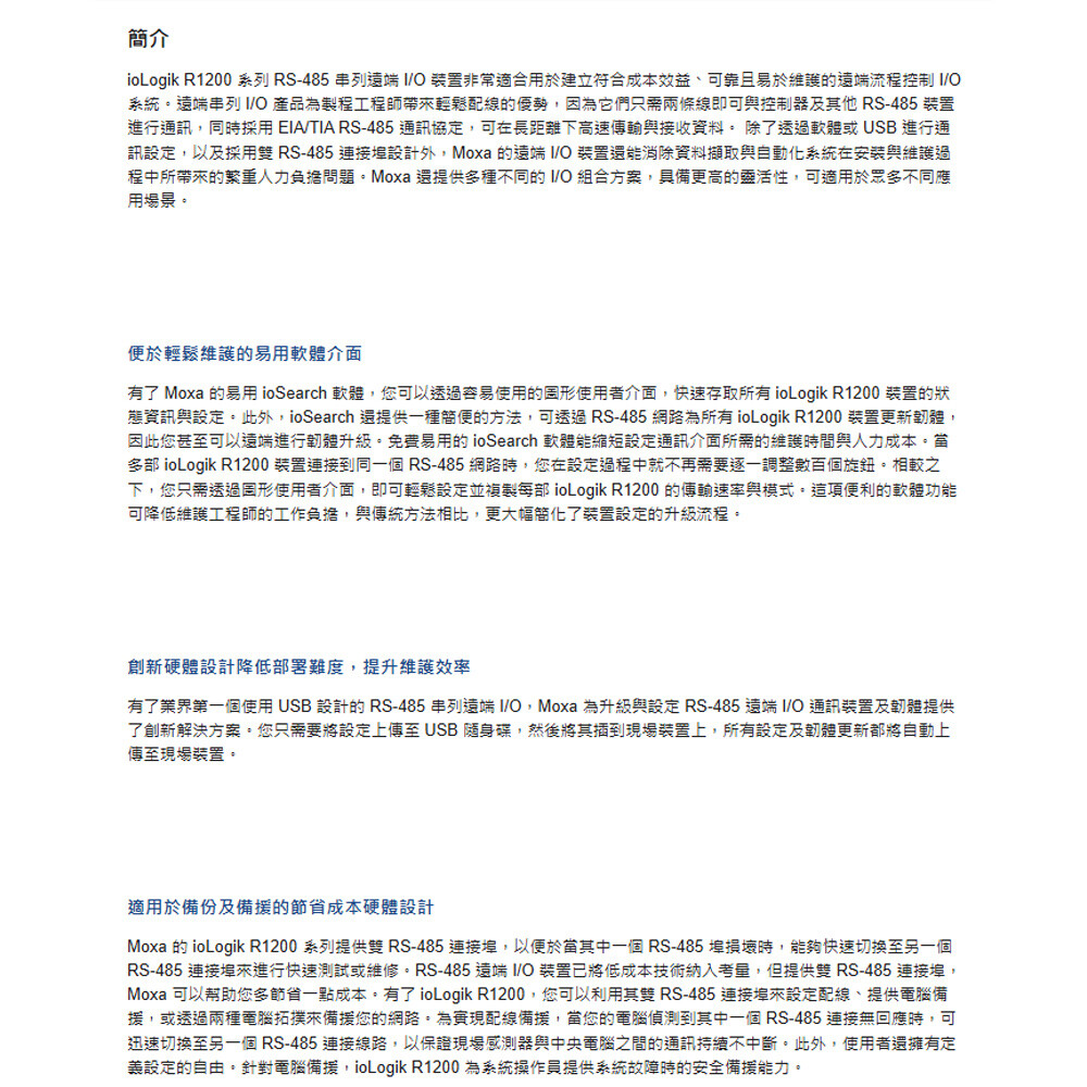 -內建訊號中繼器的雙RS-485遠端 I/O。