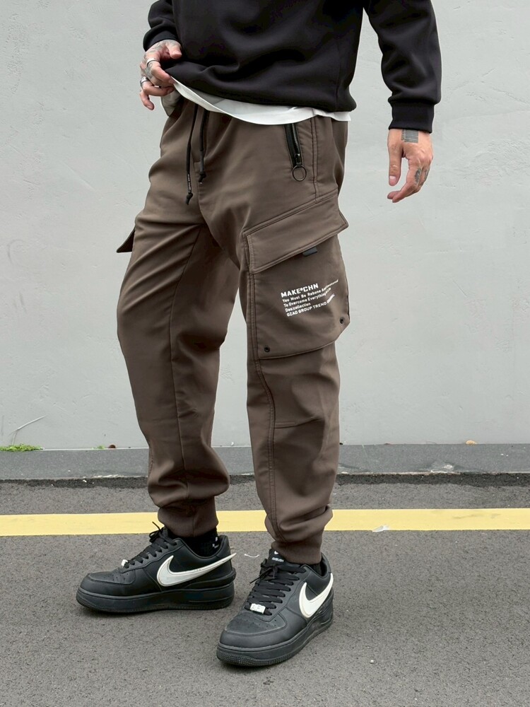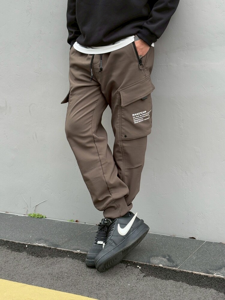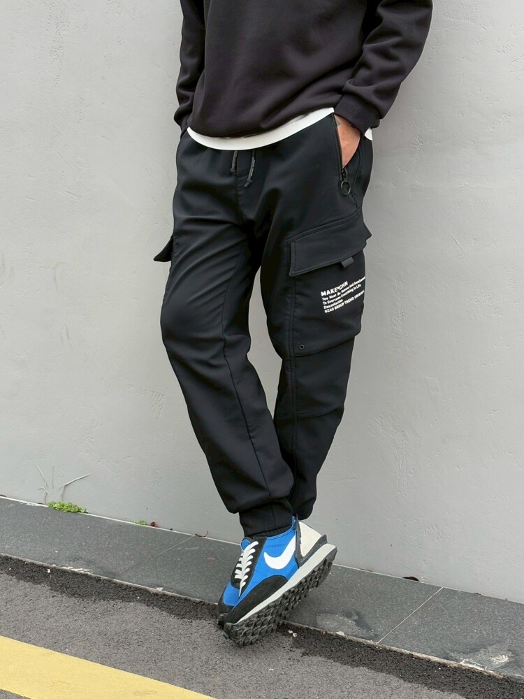 加絨大拉鍊縮口褲