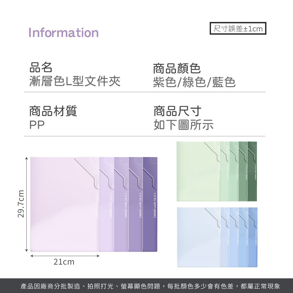 漸層色L型文件夾#A4文件夾#5入#防掉卡#資料夾#L夾#考卷收納#文件收納#檔案夾#辦公文件夾#文具