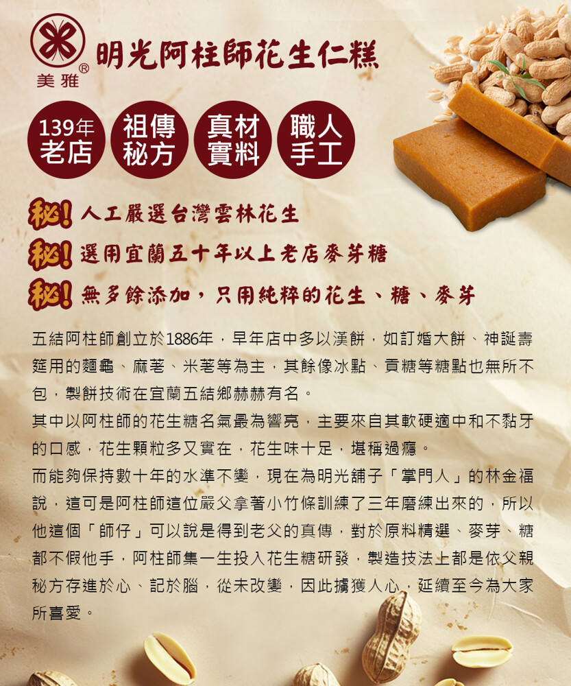 產品名稱:【美雅宜蘭餅】阿柱師花生仁糕