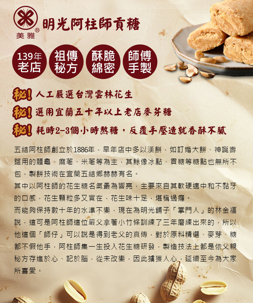 產品名稱:【美雅宜蘭餅】阿柱師貢糖