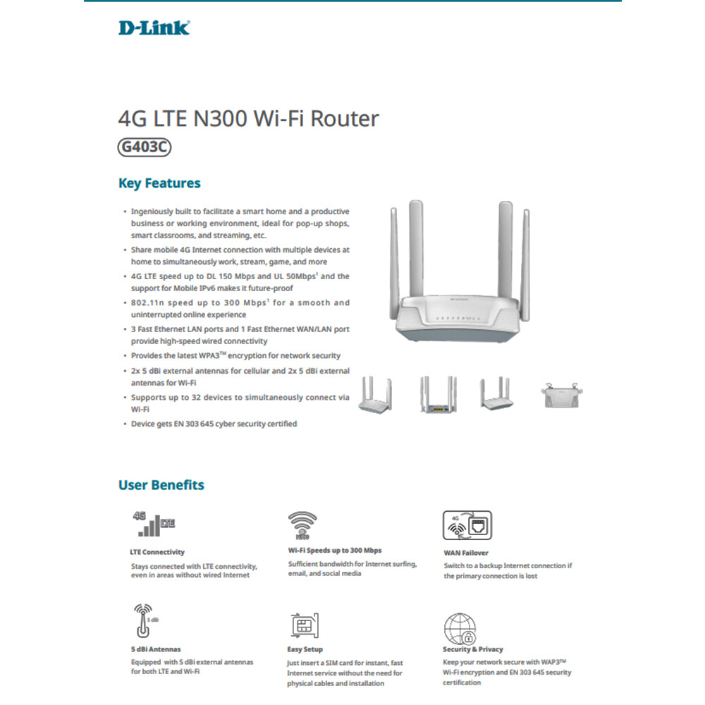 -Wi-Fi速度高達300 Mbps : 支援流暢瀏覽網頁、電子郵件和社群媒體。