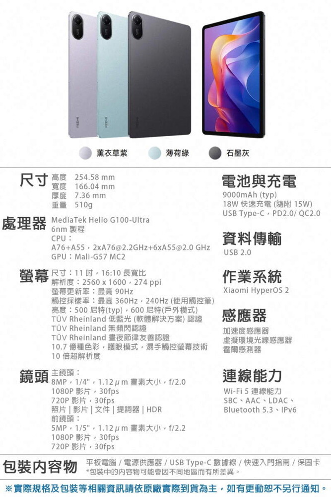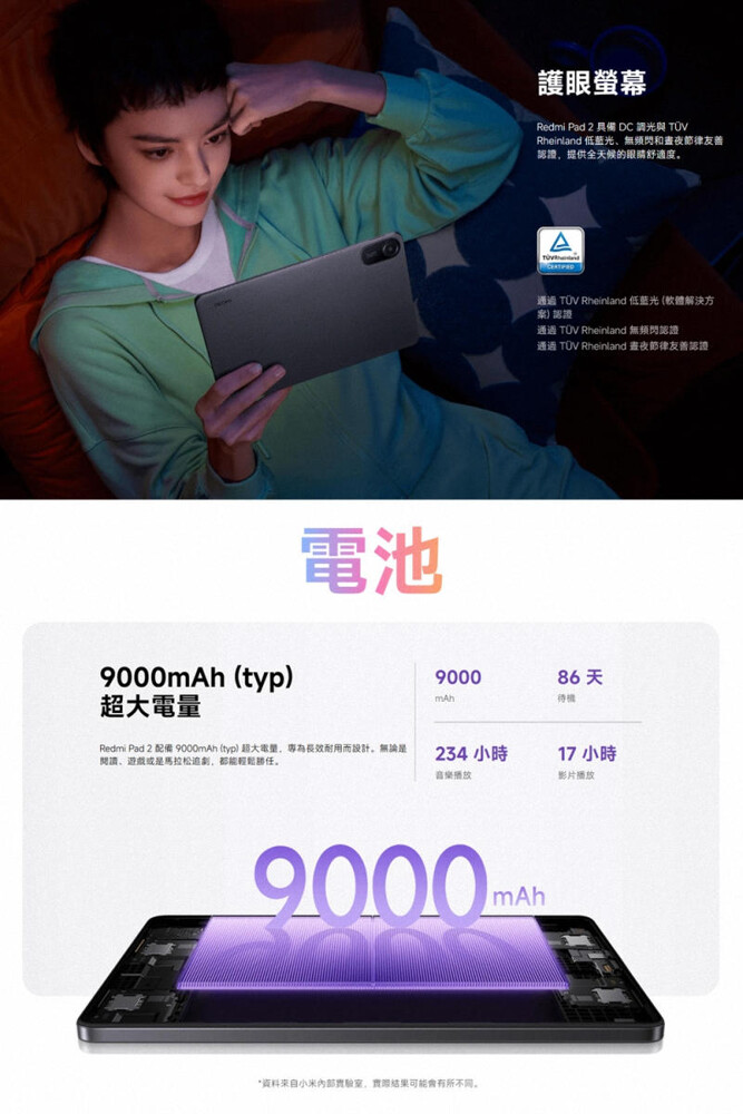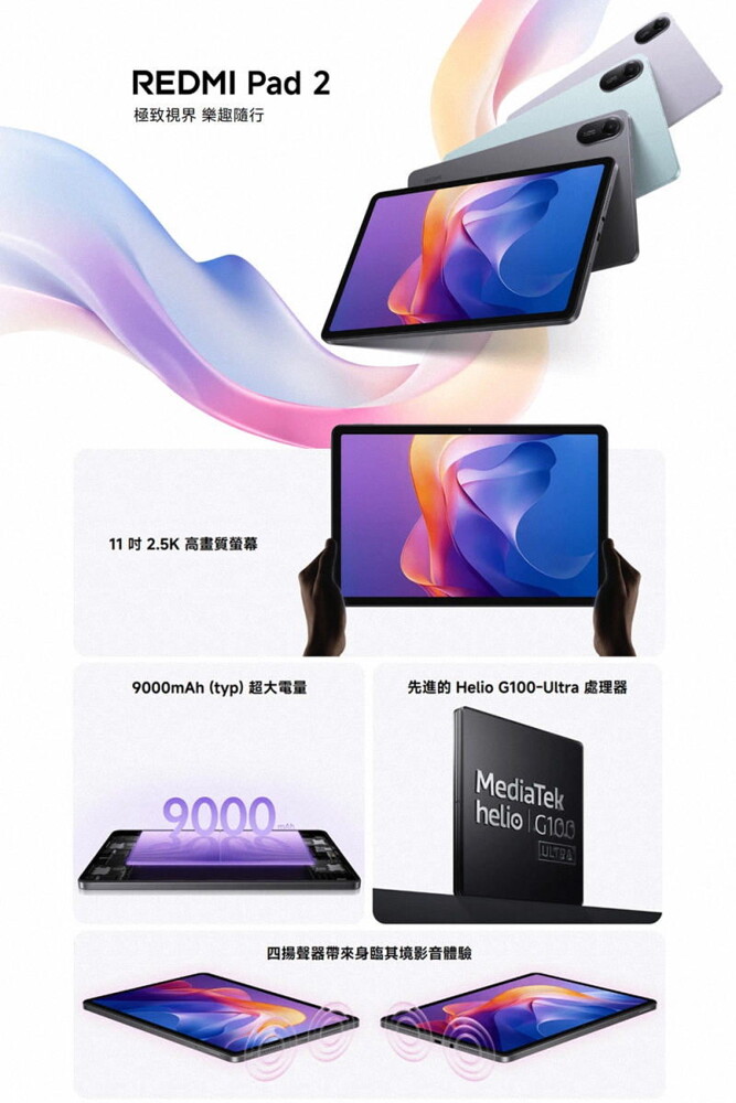 #公司貨 #紅米 #Redmi #Pad2 #11吋 #平板 #8G/256G #800萬畫素鏡頭 #9000mAh電池 #3.5mm耳機孔 #一體成型金屬設計 #杜比全景聲四喇叭 #大螢幕平板